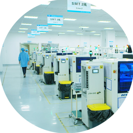 全新高端全自動生產線7條,支持單品上線最多360種類,貼片日產能1500萬焊點,100%檢驗每一個焊點。